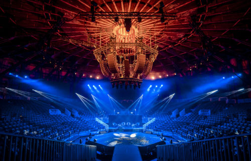 The circular centre cluster featured six arrays of nine LR18, complemented by six BC543 very high-output cardioid subwoofers. The system had to deliver speech and playback for presentations, as well as live music for the event’s opening show.