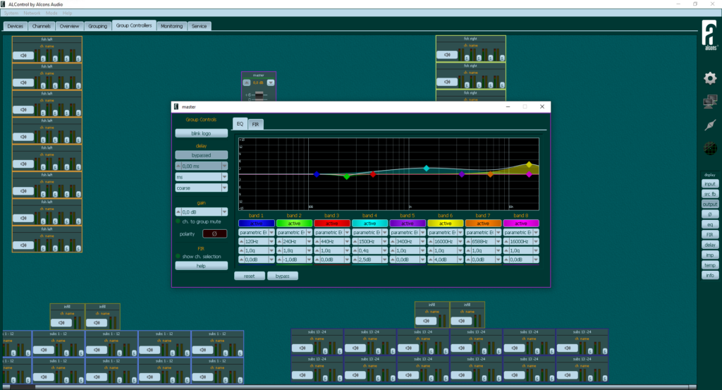 The program features full remote configuration and control of a Sentinel, for gain, delay, equalising, but also input routing, selecting presets (factory and user), custom FIR filter input, a.o. The same functionality is available for assembled groups and sub-groups of Sentinels, with overlay control.