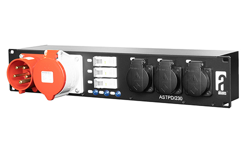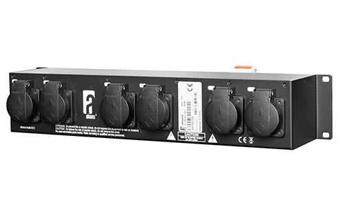 19″ Power distribution unit 230V, CEE32 in+link, 9x Schucko-out , blue LED’s, 2 HE