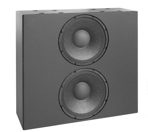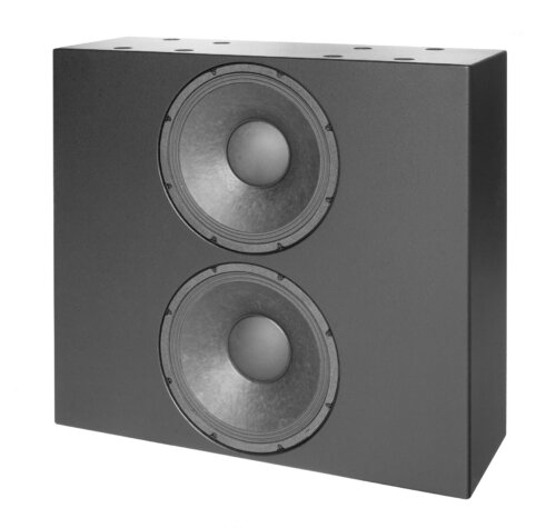 The CRMSQB can be stacked in multiples, making it an ideal building block to form bass arrays, for obtaining low frequency projection and throw control, drastically reducing the influence of the room acoustics. The controlled (cylindrical) projection of the CRMSQ can thus be extended down to the lower frequencies by enlarging the LF array length through adding extra CRMSQB modules.