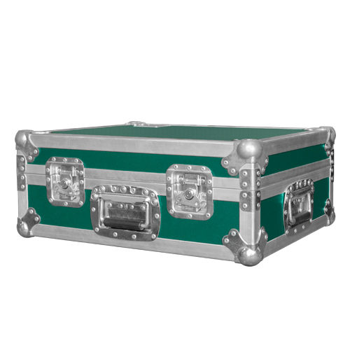Recessed handles on the front of the case and both sides. Finished with rounded corners.