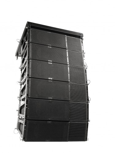 The GRD16 has a weight of 28 kg / 61.7 lb and is certified for a safety-rating of 10:1, for fifteen (15) cabinets LR16, or eight (8) cabinets LR16B on the central bar; And for eighteen (18) cabinets LR16, or ten (10) cabinets LR16B on the flying-eyes on top of the grid.