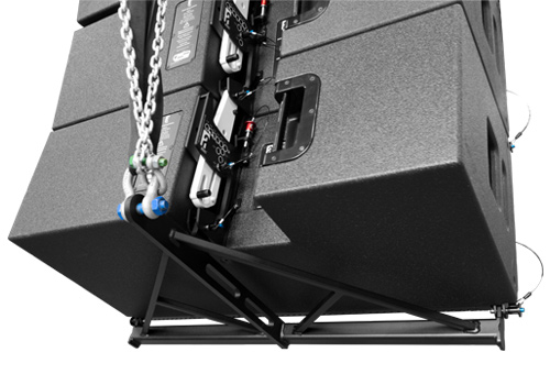The PBFRML24 frame is designed to act as “pull-back” frame, when setting-up the LR24 array in compression-mode; By pulling the frame upwards, attached to the lowest-positioned cabinet, the array is pulled into the correct (pre-set) cabinet splay angles.