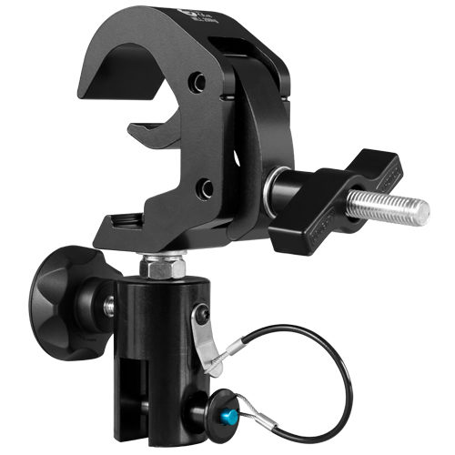 The PNCLMP is a clamp for horizontal adjusting of flown arrays of HSTBR and GRD mounted systems; RR12, QR24, LR7, LR14 and LR18. The clamp is connected to the HSTBR or GRD with a quick release pin, through the fixed hole of the HSTBR, or one of the holes in the GRD (adjusting system tilt).