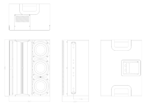 The system includes dedicated filtering, but system equalizing is done remotely (electronically) fully utilizing the individual speaker components’ power capacity; In combination with the unusual high peak power handling (3000W/200mS), this results in a virtually infinite headroom SPL from 1kHz. up.