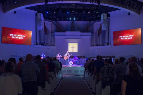 The primary use of the audio system is on Sundays, which begin with a traditional service – featuring the church’s pipe organ, choir, piano and orchestral instruments – followed by a contemporary, praise and worship-style service with modern instrumentation, including drums, electric guitars and keyboards. The church also stages a wide program of special events and performances, including the annual Disciple Now (DNOW) youth weekend, for which the main sanctuary is transformed into a major contemporary music venue.
